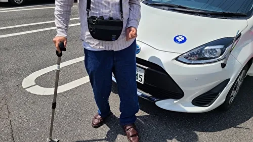 麻痺のある方が車から降車する際は、安全な場所を確保し、滑りやすい地面や急な傾斜での降車を避けることが大切です。足元が安定している場所を選び、慎重に動作を行いましょう。また、降車時にはしっかりとした支えが必要となるため、AピラーやBピラーに手すりを設置することで安定性が向上します。手すりが付いていない場合は後付けのオプションを検討し、自身の動作に合わせた適切な場所に取り付けることで、スムーズな降車が可能になります。今回も乗車時と同様に、降車の際も左足がハンドルに引っかかりやすく、時間がかかることがありましたが、早さよりも安全を優先することが大切です。
