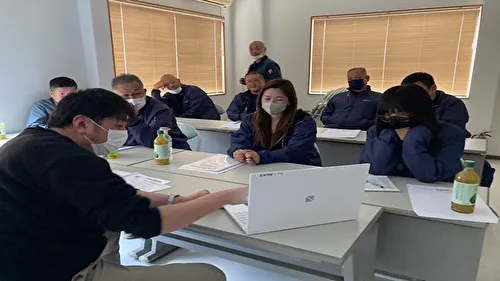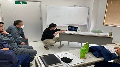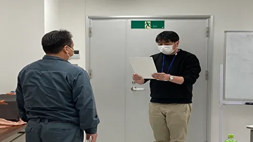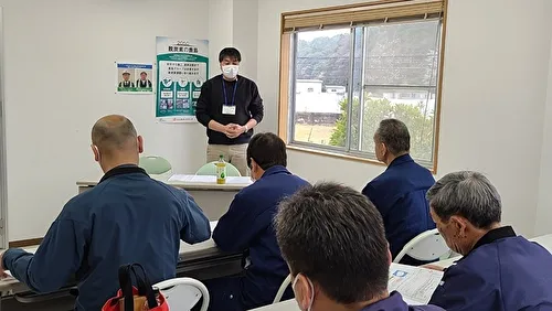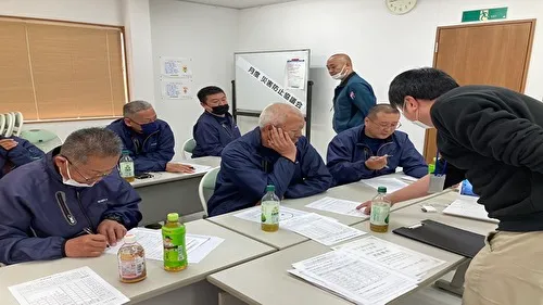 有限会社林建材土木の代表取締役である林昌彦様より、研修開催に際してのご挨拶と当日のスケジュールについてご説明いただきました。続いて、私から千葉県内での交通事故の現状を踏まえ、安全運転の重要性や法規走行のポイント、最新の道路交通法について講義を行いました。