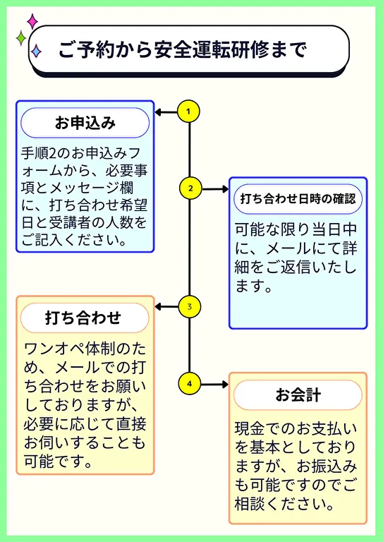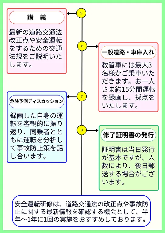 ※ このページの最後に、先日実施した安全運転研修の様子を写真とともにご紹介しています。研修の雰囲気を感じ取っていただければ幸いです。