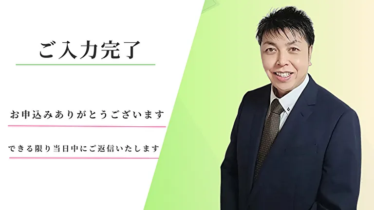 送信が完了していない場合は、赤色またはオレンジ色の表示がされます。数回実施しても送信できない場合は、お手数ですが、メインページ上部ヘッダーにある「お問い合わせフォーム」から送信するか、お電話(043-372-4885)にてご連絡ください。また、メールが届かない場合は、迷惑メールフォルダをご確認ください。